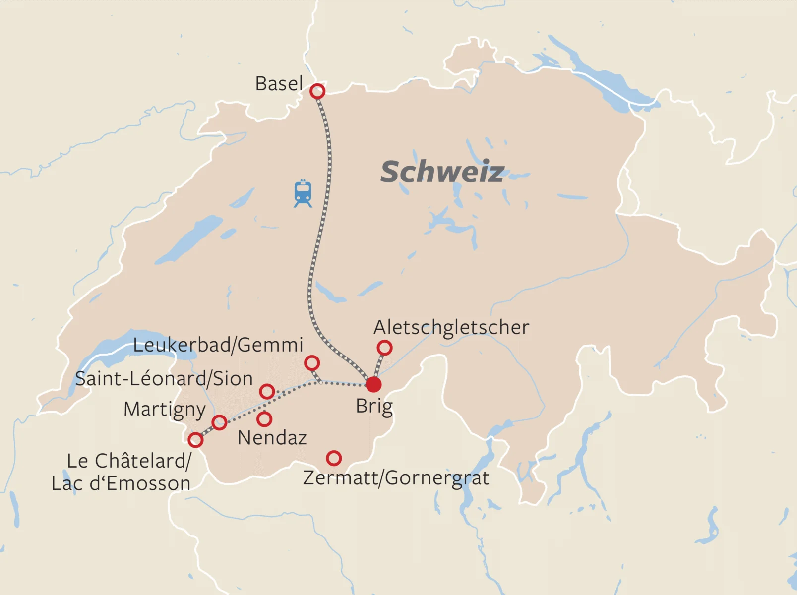 Die höchsten Berge, die größten Gletscher und die meisten Viertausender der Alpen, der meistfotografierte Berg der Welt, die ältesten Holzhäuser der Schweiz, die spektakulärsten Wanderungen und Skigebiete und das berühmte Raclette – all das ist im Wallis zu Hause. Wir wohnen im sonnigen Rhônetal und unternehmen beeindruckende Ausflüge durch den zweisprachigen Kanton, der keine Wünsche offenlässt.