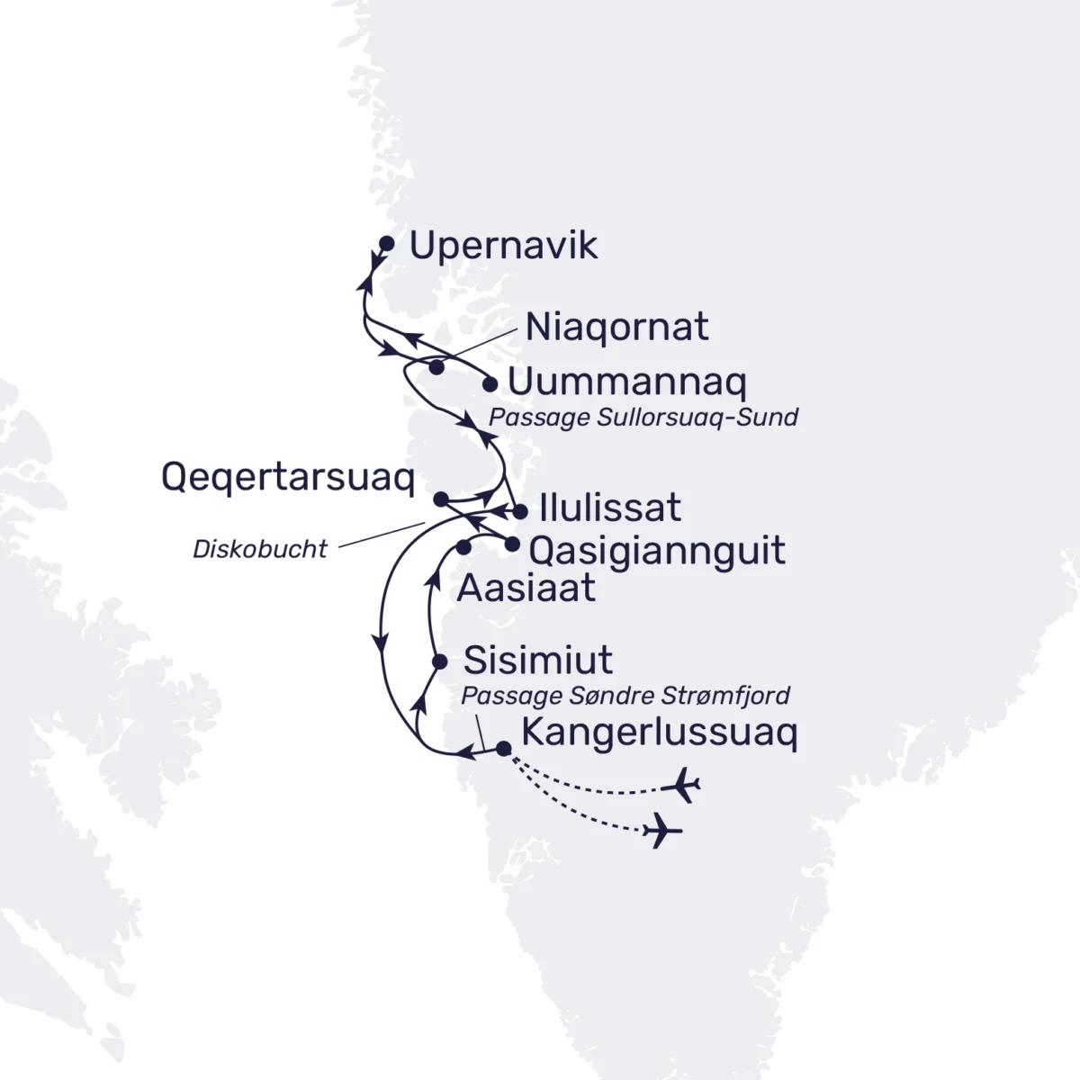 Für jeden Nordlandfreund erfüllt sich ein Wunschtraum, wenn uns MS MAMBURG entlang der Küste der größten Insel der Welt trägt: Kalaallit Nunaat – Land der Menschen – Grönland! Eine Seereise durch die Gewässer Grönlands ist ein Besuch des größten Skulpturenparks der Welt. Zur Ausstellung stehen Eisberge in allen möglichen Formen und Größen, manche von gigantischem Ausmaß, andere voller Grazie; alle dem unausweichlichen, langsamen Schmelzprozess unterworfen.