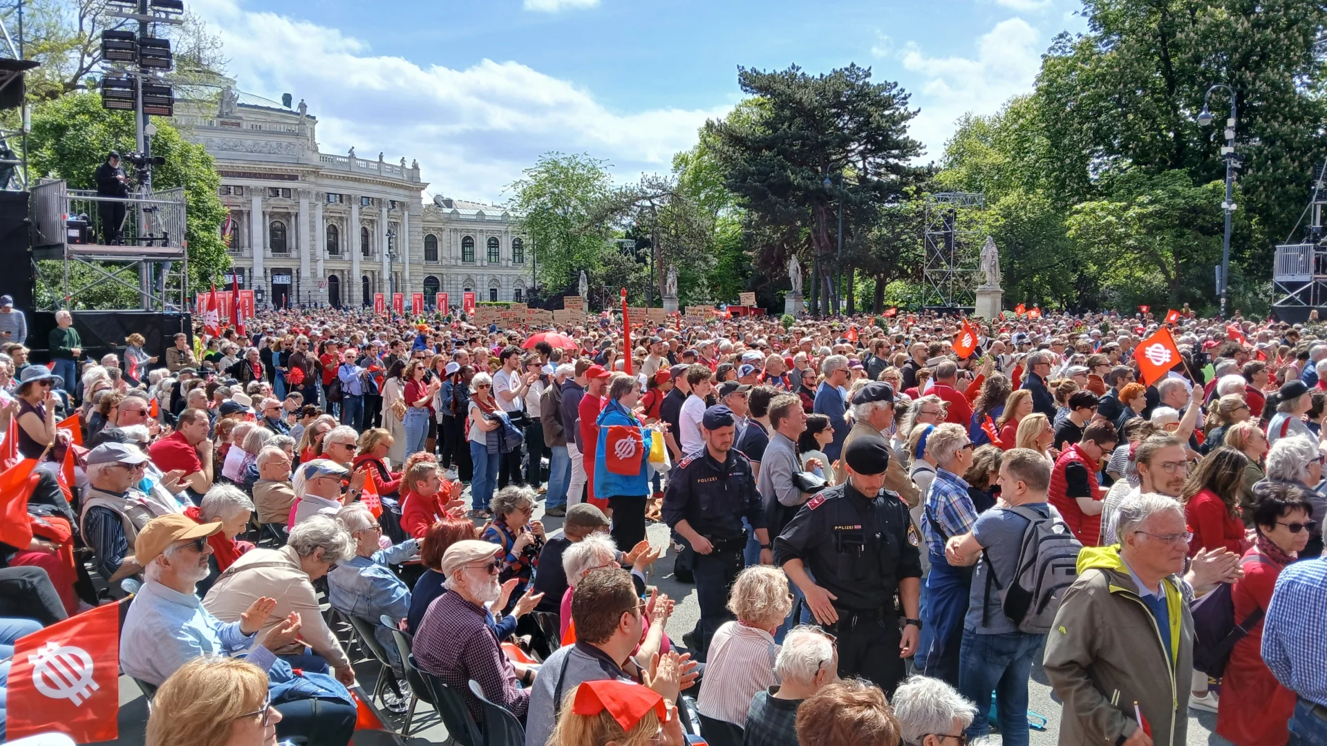 Die Wiener Altstadt mit ihren Prunkgebäuden, die Kaffeehäuser, Sachertorte, Walzerklänge und die regionale Küche beim Heurigen – all das macht immer wieder Spaß. Am 1. Mai findet die imposante Maikundgebung der SPÖ auf dem Rathausplatz statt. Für uns sind Sitzplätze auf der Ehrentribüne reserviert, um den Aufmarsch Zehntausender Genossinnen und Genossen mitzuerleben und mit ihnen gemeinsam die „Internationale“ zu singen.